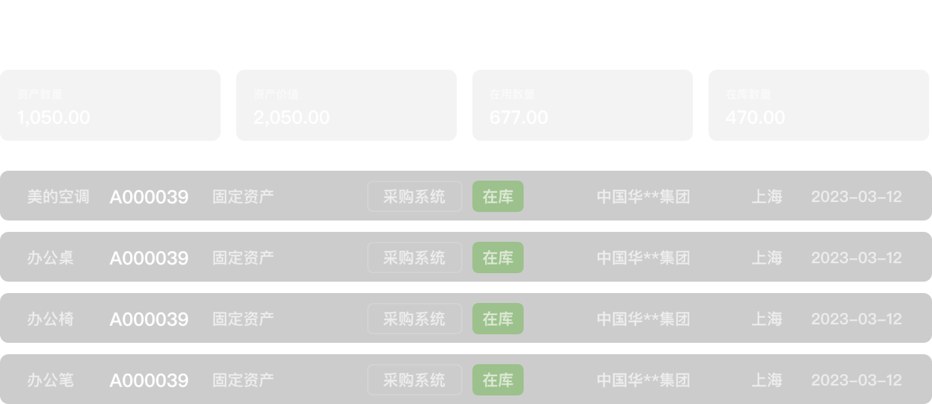 泛微·资管家提供从资产采购、入库、领用、变更、维修、调拨到报废处置等环节进行全过程跟踪和管理,让资产状态清晰、保值增值。