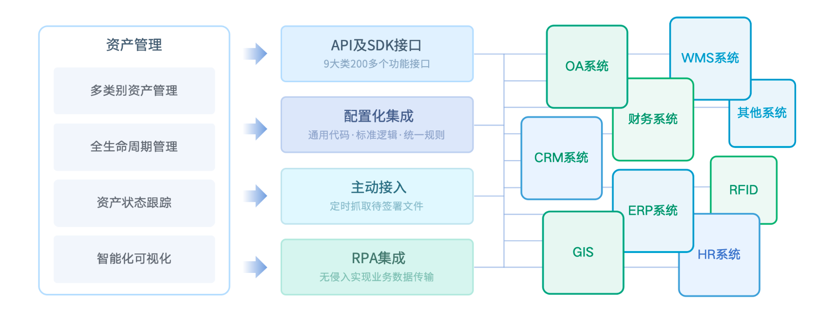 资产全生命周期管理、全类别资产一体化管理。